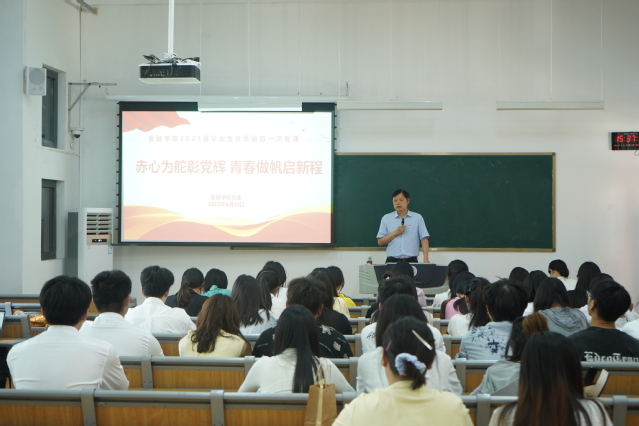 最后,李浩书记以“赤心为舵彰党徽 青春作帆启新程” 为题讲授党课,李书记领学了习近平总书记关于加强党的作风建设的重要论述和中央八项规定及其实施细则精神,并对毕业生党员提出四点希望和要求。一要坚定理想信念,坚守红线意识。要严守党规党纪,绷紧纪律之弦,强化纪律意识和规矩意识,严守纪律红线和道德底线;二要提高政治站位,坚定政治立场。牢记党员身份,提升党性修养,以实际行动践行使命担当,以率先垂范彰显政治本色;三要树立党员形象,践行服务宗旨。做好先锋表率,要关注并解决身边同学离校过程中遇到的各种困难,以实际行动践行党员的初心使命,牢记为人民服务宗旨;四要秉承母校校训,励志爱校荣校 。希望同学们在各行各业要继续秉承“格物致知、敬业乐群”的校训,无私奉献,开拓创新,为党旗增辉,为母校添彩。