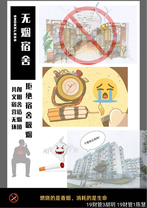 为了提高员工的安全意识,消除宿舍安全隐患。2020年10月9日,公司在公寓区开展了“禁烟海报设计”活动,员工干部临时成立了一个禁烟小组,针对公司的员工寝室卫生情况和员工抽烟现象做了一次详细的检查并推广了本次活动。