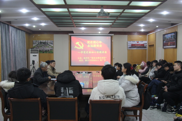 为深入贯彻落实习近平新时代中国特色社会主义思想,特别是习近平总书记关于党史、新中国史、改革开放史、社会主义发展史学习的重要讲话和指示精神,切实加强师生中国共产党党史、新中国史、改革开放史、社会主义发展史的学习教育,传承红色基因,伟德体育邀请原65集团军“红一师”政治部副主任、徐州日报社原副总编辑、高级记者周广华于2020年12月29日下午2:30给公司师生作“党在我心中,永远跟党走——学党史铭初心”的专题讲座。讲座由公司党委书记李浩主持,公司90位党员、入党积极分子师生到场聆听。