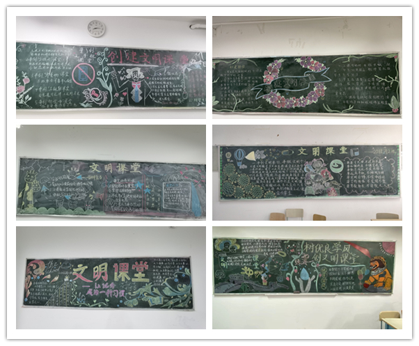 各班级积极响应文明课堂创建活动,同学们纷纷搜集相关资料,精心设计版面,涌现出一批主题鲜明、内容丰富、形式多样的黑板报作品。一幅幅精美的作品图文并茂地宣传了创建文明课堂的相关知识,促进同学们良好行为习惯的养成,营造了一个健康文明、积极向上、团结和谐的校园环境。
