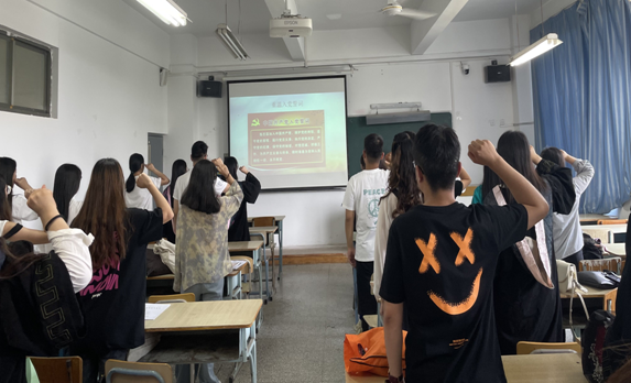 在庄严的国歌声中,活动拉开序幕。庄老师首先对大家在校期间的良好表现给予了充分肯定,希望全体毕业生党员将优良作风带到工作中,率先垂范,发挥引领示范作用。接着对毕业生党员进行了理想信念教育、党员组织纪律教育、毕业生党员的爱校荣校教育以及交代了党组织关系转接事宜。随后,庄老师对大家离校之后提出了三点要求:一是要继续加强党史学习,坚定理想信念。做到思想进步、政治可靠,成为祖国和革命事业的栋梁之才。二是要提高政治站位,提升党性修养。作为党员,严格要求自己,不断用行动锤炼自己的党性,培养和树立良好的政治品格,做一个有担当的人。三是在离校之际,尤其是服务毕业生就业过程中,做好表率,做好服务,充分体现“一位党员一面旗帜”的模范引领作用。