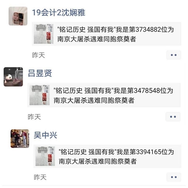 国行公祭,祀我殇胞。今年是第八个国家公祭日。南京大屠杀死难者国家公祭日设立以来,对30万遇难同胞的深切缅怀和对那段灾难历史的深刻反思,正成为国人传承历史记忆的行动自觉,化作中华民族伟大复兴的不竭动力。铭记历史,方能在沧海横流中积蓄砥砺前行的力量。通过本次活动,金融学子对“南京大屠杀”这段历史有了深层次的了解,也深感和平的可贵与来之不易。昭昭前事,惕惕后人;民族复兴,吾辈自强!曾经的苦难是我们前行路上的动力,今天的奋斗是为了中华民族伟大复兴。新时代的青年,要以振兴中华为己任,内修素养,外修本领,勤奋学习,扎实工作,让青春成为中华民族生气勃发、高歌猛进的持久风景,以国家公祭筑牢共同记忆,以青年之力共创和平美好社会,以奋进向上的伟大民族精神共建社会主义现代化强国!
