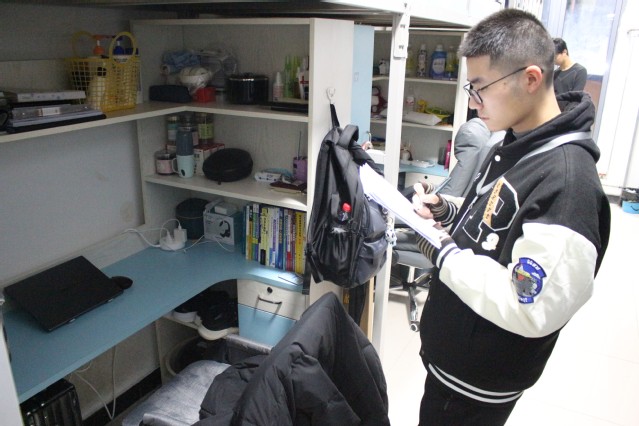 在检查的过程中,查看、摸排员工是否使用电炉、电暖器、电饭锅等违章电器,是否在宿舍内藏有管制刀具、易燃易爆等违禁品,对电源线路状态、是否吸烟等涉及到消防安全的情况进行深度排查,同时对员工宿舍的地面与床铺卫生、物品摆放等卫生较差的情况督促改进,并细致记录每间宿舍的具体情况,确保此次检查地毯式、全覆盖、无死角。同时也对员工在日常学习和生活中遇到的问题给予了耐心的解答。