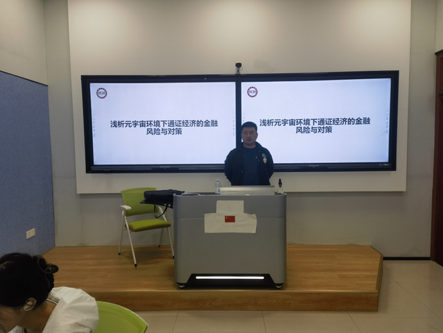 2024年10月11日上午,公司教师支康权博士为金融科技专业的员工举办了一场题为“浅析元宇宙环境下通证经济的金融风险与对策”的讲座。首先,支博士生动形象、简明扼要地向员工介绍了NFT(非同质化代币/凭证)和元宇宙的定义、技术原理与存在意义,随即引出元宇宙中区块链的应用价值以及基于区块链技术发展起来的通证经济。随后,支博士为员工详细阐述了“通证”的运作原理与形式,从而承接上文展现区块链、通证和元宇宙之间的密切关系。支博士强调,通证技术在商业活动、金融活动以及社会治理中扮演着重要角色,是不可或缺的数字化权益证明技术,同时也为数字经济做出了巨大贡献。其次,支博士指出现有金融系统的脆弱性主要来自两部分,并根据该问题进行了深入分析,说阐明了通证经济在消除旧风险因子和催生新风险因子两方面的各类情况。最后,支博士列出了元宇宙环境下通证经济金融风险的防范对策,同时肯定了通证经济的积极影响,并展望了数字经济的美好未来。